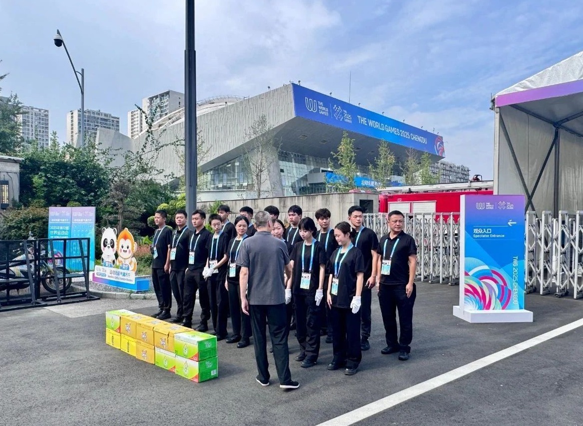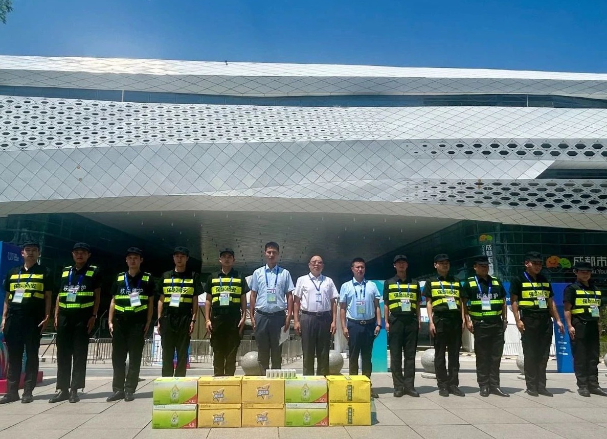 2025年8月7日,第十二届世界运动会在成都隆重开幕,全市安保力量正以高度的责任感和饱满的热情投入各项安保工作。广大保安员作为安保体系的重要基石,不辞辛劳、日夜奋战在核心赛区及保障区域一线,为赛会的平安顺利举办付出了艰辛努力。成都市保安协会于8月9日至8月17日,组织开展了“夏送清凉”慰问活动,向在高温下坚守岗位的一线保安员送去关怀与支持。